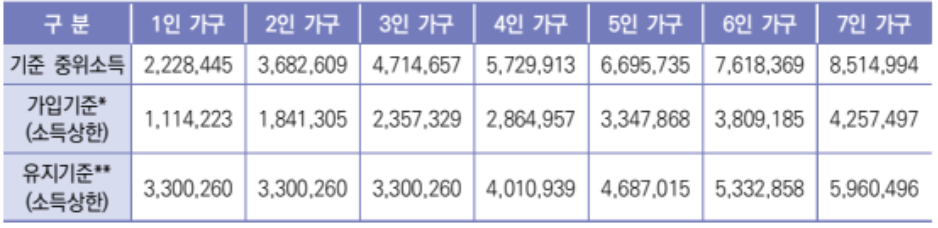 ✅ 신청 당시 가구의 소득인정액이 기준 주위소득의 50% 이하